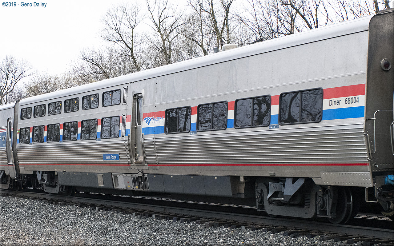 de Ferrocarrilesas) in Elmira Heights, NY in April 2017 and numbered 68004 with this series of cars being named after state capitals east of the Mississippi. These cars were built to replace Heritage Dining Cars which were used on eastern long-distance trains that operated out of New York and were all delivered in Amtrak's classic Phase III paint scheme while sporting the current Amtrak "Travelmark" Logo. Historical information about this car provided by www.amtrakbythenumbers.com. |