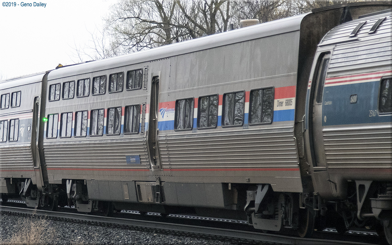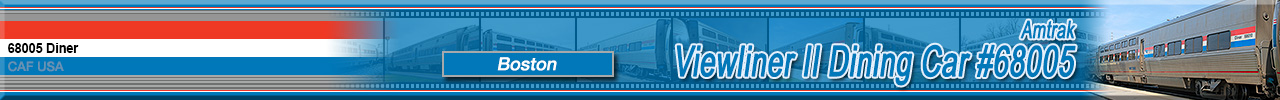 de Ferrocarrilesas) in Elmira Heights, NY in April 2017 and numbered 68005 with this series of cars being named after state capitals east of the Mississippi. These cars were built to replace Heritage Dining Cars which were used on eastern long-distance trains that operated out of New York and were all delivered in Amtrak's classic Phase III paint scheme while sporting the current Amtrak "Travelmark" Logo. Historical information about this car provided by www.amtrakbythenumbers.com. |