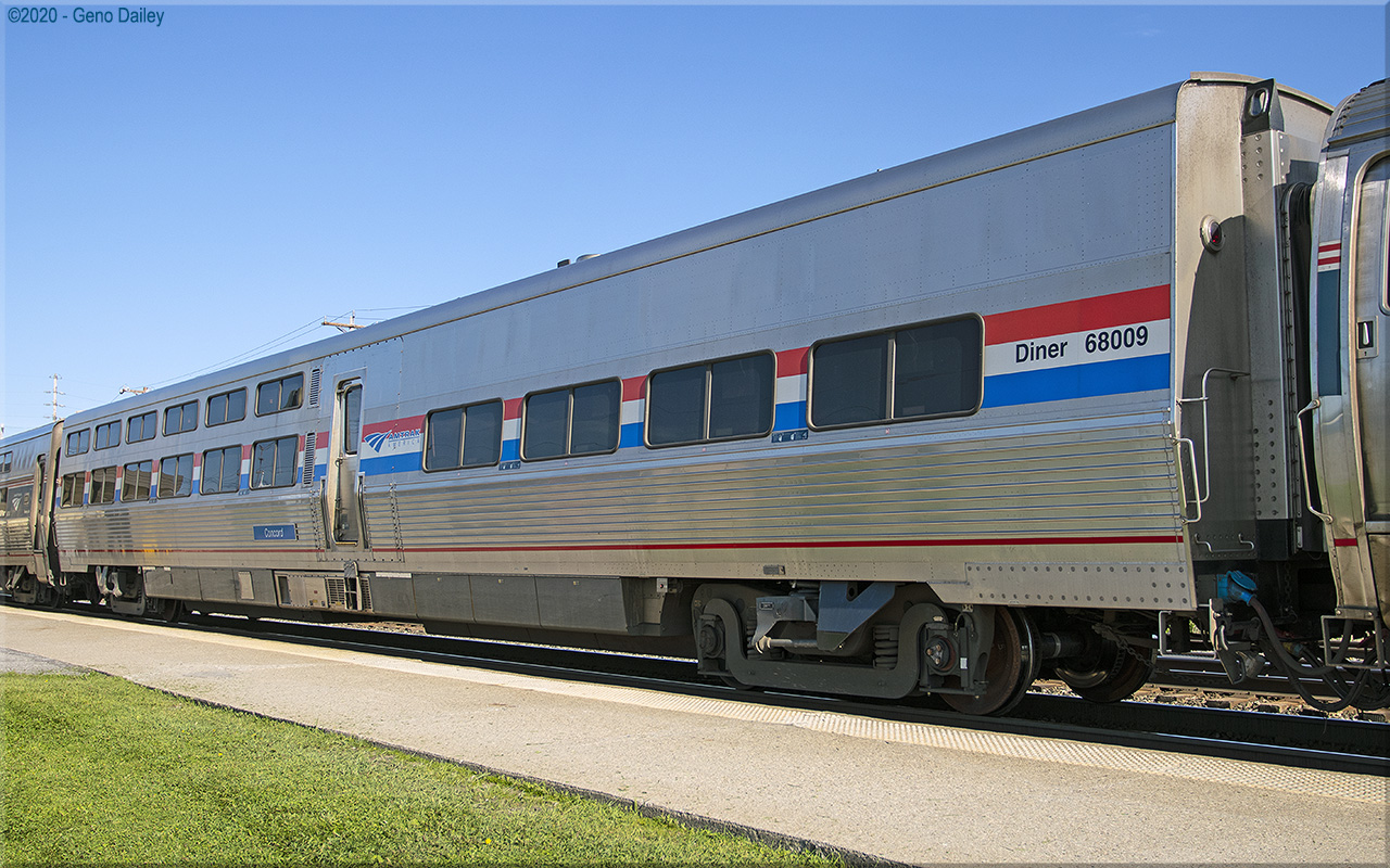de Ferrocarrilesas) in Elmira Heights, NY in July 2018 and numbered 68009 with this series of cars being named after state capitals east of the Mississippi. These cars were built to replace Heritage Dining Cars which were used on eastern long-distance trains that operated out of New York and were all delivered in Amtrak's classic Phase III paint scheme while sporting the current Amtrak "Travelmark" Logo. Historical information about this car provided by www.amtrakbythenumbers.com. |