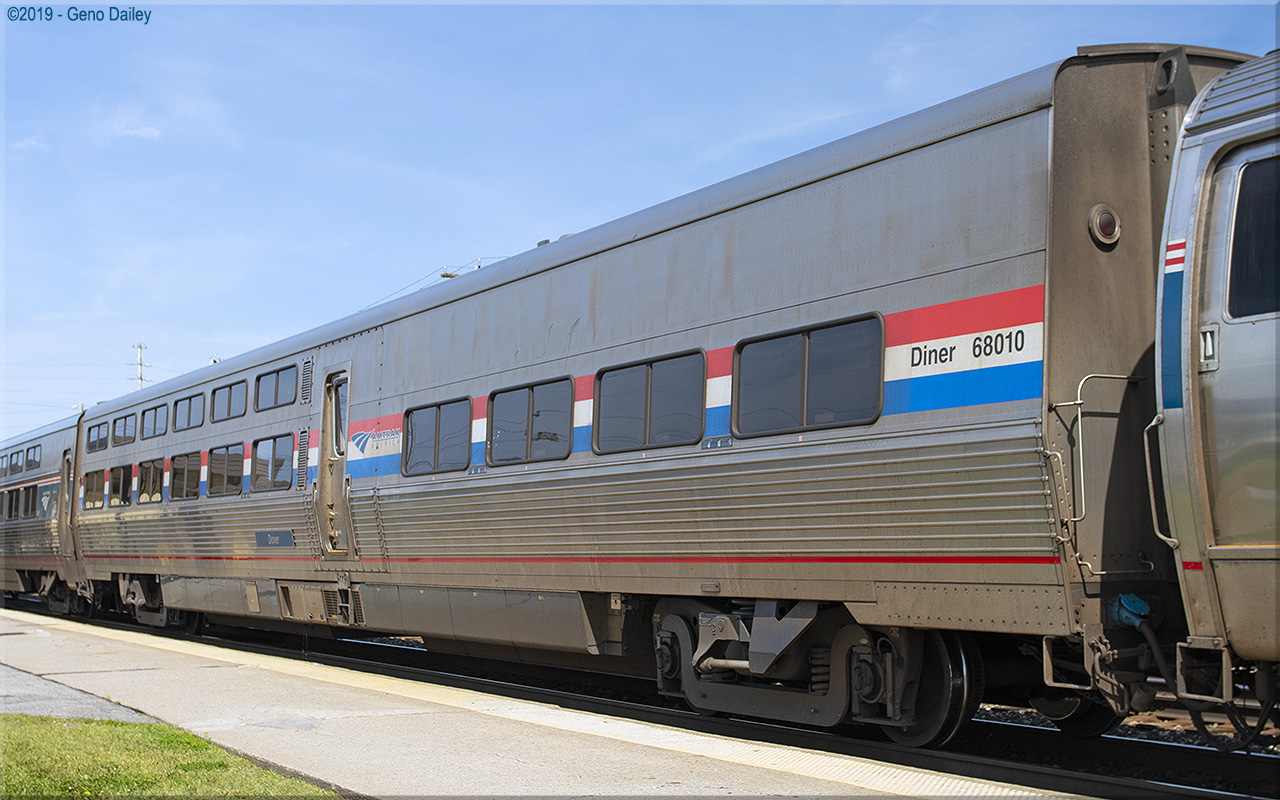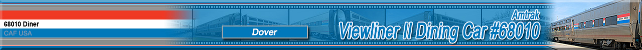 de Ferrocarrilesas) in Elmira Heights, NY in July 2017 and numbered 68010 with this series of cars being named after state capitals east of the Mississippi. These cars were built to replace Heritage Dining Cars which were used on eastern long-distance trains that operated out of New York and were all delivered in Amtrak's classic Phase III paint scheme while sporting the current Amtrak "Travelmark" Logo. Historical information about this car provided by www.amtrakbythenumbers.com. |