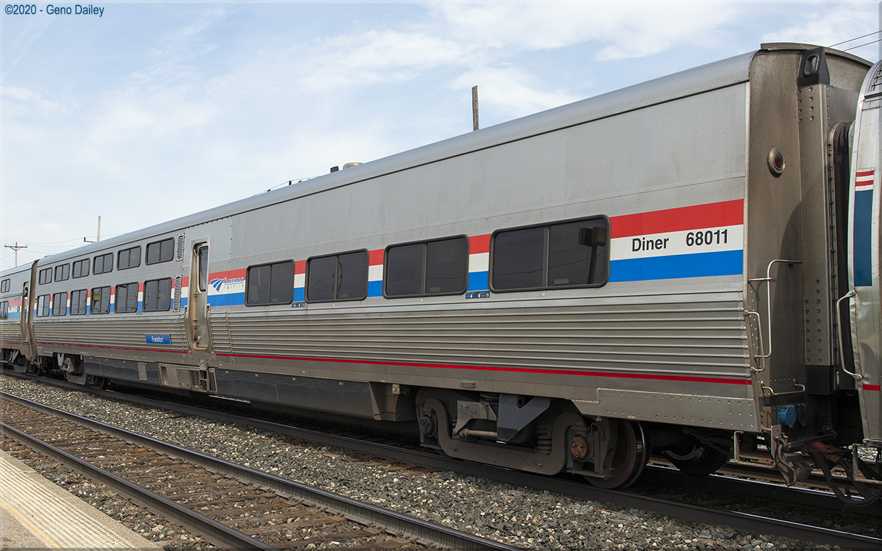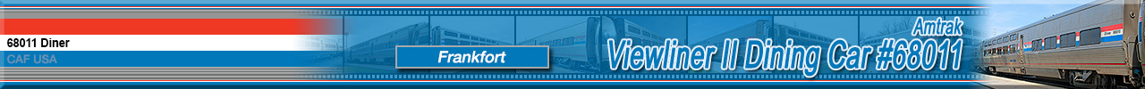 de Ferrocarrilesas) in Elmira Heights, NY in July 2017 and numbered 68011 with this series of cars being named after state capitals east of the Mississippi. These cars were built to replace Heritage Dining Cars which were used on eastern long-distance trains that operated out of New York and were all delivered in Amtrak's classic Phase III paint scheme while sporting the current Amtrak "Travelmark" Logo. Historical information about this car provided by www.amtrakbythenumbers.com. |