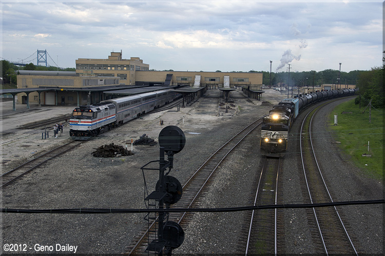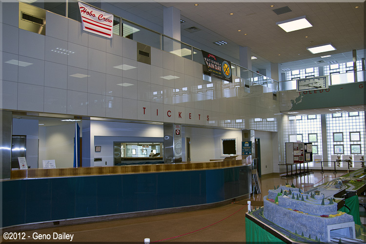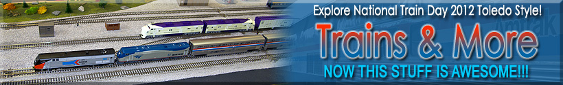 Well, there's simply no other way to describe it: Toledo knows how to put on a great train show! This National Train Day event is one of the biggest in the country! Because Toledo celebrates this event 1 week before the rest of the country, Amtrak was not only able to provide the exhibit train, but an additional 4 Superliner cars for people to tour as well! The Superliners were not open on Friday during the private showing but would be open on Saturday for tours along with the rest of the exhibit train. The train was set up so that the P40DC #822 was on one end and the F40PH #406 was on the other end. This travelogue will include extensive photo coverage of many angles of this event and will also include roster photos of the entire train along with extensive photos of the exhibits in the train. I'll conclude it with some night photography, something you won't want to miss!!! Amtrak and the Toledo-Lucas County Port Authority (owner of the Toledo Station) did a tremendous job putting this event together. I am glad to have been able to be there for it. Personally, I won't forget the reactions of some Amtrak employees who couldn't believe someone would drive over 300 miles to see this train but even if you're a semi-regular visitor of this web site, you'll understand why I would choose to make such a big trip! Overall, I met several Amtrak employees during my visit to Toledo, all of which did an incredible job making this event so great! So with that in mind, let's take a look at some photos of the train and events involving and surrounding it taken the day before it opened to the public! Enjoy... |