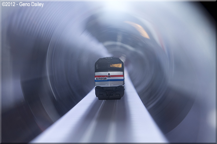 accomplished by putting the camera behind the end of the plastic display tube the train was set up in! |