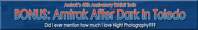 Well, I hope you enjoyed this travelogue, I certainly enjoyed experiencing all of this! Amtrak did nothing short of an incredible job with the Exhibit Train and the Amtrak staff at Toledo Union Passenger Terminal also did a great job handling everything related to this event. This was the first National Train Day event I have ever attended and everything about it was just plain great! Toledo really knows how to put on a great train show! Special thanks again goes to Amtrak for putting on such a great event and for their assistance with some of the photography in this travelogue. I began my journey back to Buffalo shortly before the event ended later on Saturday afternoon. The ride was uneventful, though there wasn't much time to relax once I got home since my next trip would start 4 days later! Until my next road trip, Happy Railfanning!!! |