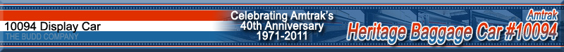 Former Baggage Car for the Santa Fe Railway. Conveyed to Amtrak in 1971, the car ran nationwide until being stored in 2009. Historical Information about this car provided by Amtrak. |