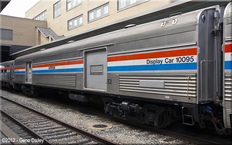 Former Baggage Car for the Santa Fe Railway. Conveyed to Amtrak in 1971, the car ran throughout the Amtrak system and eventually had bicycle racks installed and ran on Amtrak's Twilight Shoreliner. The car was stored in 2005. Historical Information about this car provided by Amtrak. |