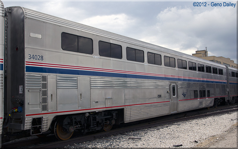 Your typical coach on today's long-distance trains that carry Superliners. These cars also pinch-hit on some Amtrak California Pacific Surfliner and Capitol Corridor/San Joaquins Trains and also work on some short-distance midwestern routes. A coach seat in one of these cars is about as big as a first-class seat on a plane with a much bigger window and lots more room to stretch out and relax! |