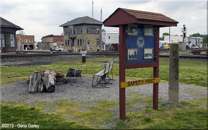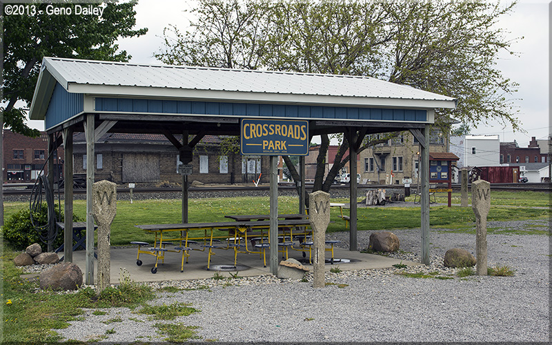 After spending an incredible Thursday at Media Day at Cedar Point, I wanted to get out and do some railfanning. Unfortunately, the weather today would be a complete 180 compared to yesterday with gray skies and light to moderate rain with much cooler temperatures. I wasn't gonna let this stop me if at all possible so I made the near 80 mile drive from Sandusky to the small Northwest Ohio Town of Deshler. Located south of Toledo, this is the location where CSX's Ex-B&O Garrett Sub crosses another former B&O line, now CSX's Toledo Sub. At the location of this diamond sits Crossroads Park, a railfanning park allowing for good views of these two mainlines. The park features a covered pavillion with picnic tables and free wi-fi internet. There is also a radio broadcasting the local railroad radio along with a fire pit. I spent part of my afternoon here to see some trains while dodging the raindrops! Included here are photos taken during my visit here...