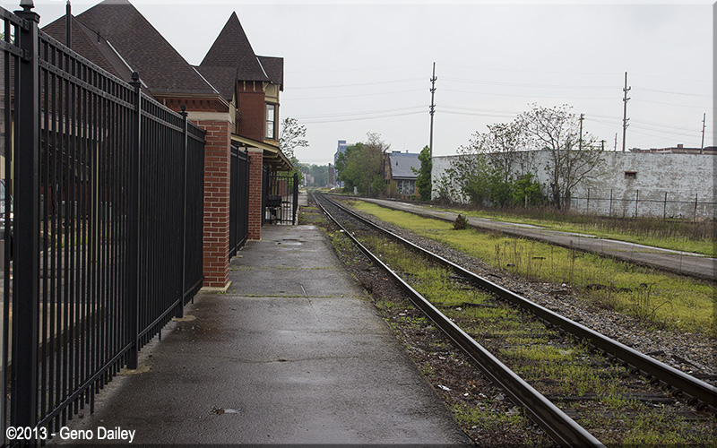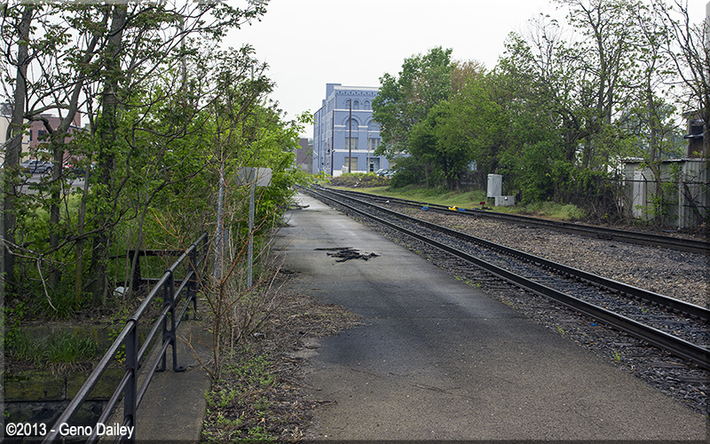 | Thanks to one of the maintenance workers at the station, I was able to walk onto the platform to get a few photos, this one looking west. |