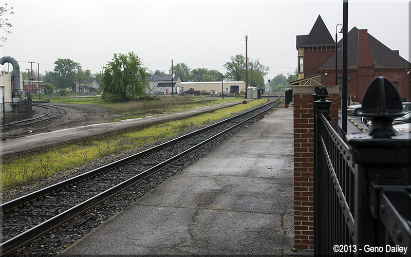 Looking west down the platform at Lima with the old Pennsylvania main, later the Conrail Fort Wayne Line, and now the