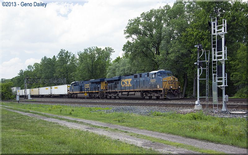 OK back to some more trains! Here we have eastbound CSX Train Q-156 with GE ES40DC #5323 leading. The signal in the foreground