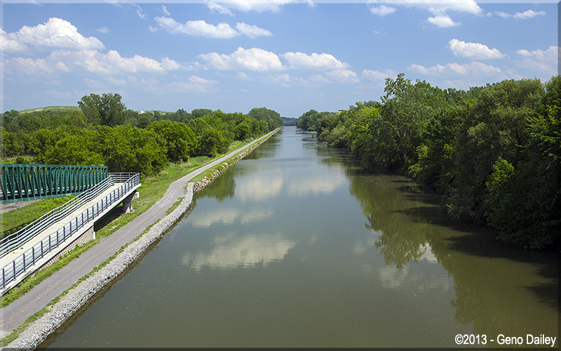 As I was saying earlier, I was railfanning along the Erie Canal. Here is a view of the canal looking east from the bridge on Lyndon Road.