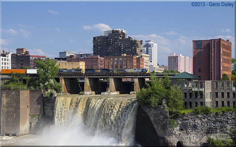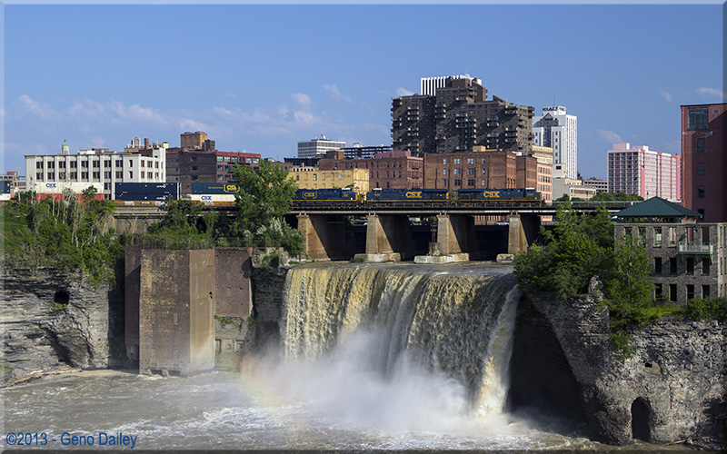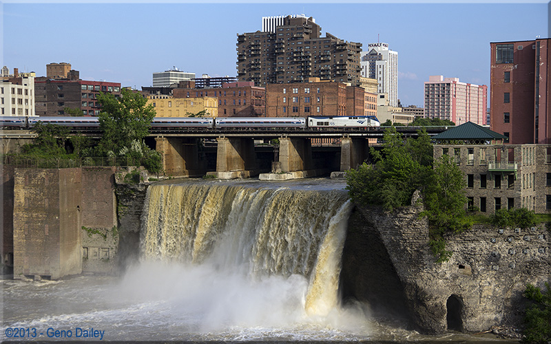 After spending part of the afternoon at Fairport, I drove back to Downtown Rochester and parked the car near the Center At High Falls and made the walk out onto the Platt Street Bridge over the Genesee River. Once I found a good spot, I set up the camera and tripod and waited for the trains. My plan was to photograph Amtrak Empire Service Train #281 along with whatever freights would come by. My original hope was also to photograph Amtrak Empire Service Train #283 but due to a change in the weather and a late running train, I would only photograph #281 in Rochester. Upon leaving the High Falls, I drove out to the suburb of Gates to eat at a restaurant built inside a former New York Central station there but unfortunately it was closed. I continued the drive back to Buffalo and would photograph #283 there. Included here are some photos at the High Falls and of Train #283 at Buffalo-Depew Station on the way home. Until next time, when I'll be heading back out to Ohio to celebrate the 50th Anniversary of the Cedar Point & Lake Erie Railroad at my favorite amusement park on the planet, Happy Railfanning... |