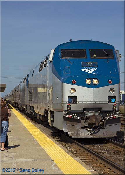 LEFT: Arriving at Buffalo-Depew Station is Amtrak Train #48 with P42DC #77 on the head end. RIGHT: I like to caption a photo like this