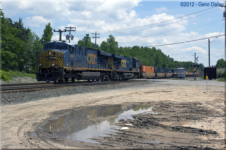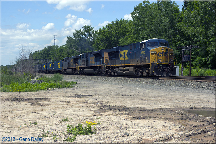 The train hiding on the siding to the left of the photo is CSX Train Q-287 waiting for a signal to head west.