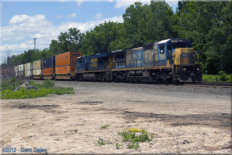 | Next up is CSX Train Q-158 with GE C40-8 #7554 leading this eastbound intermodal. |
