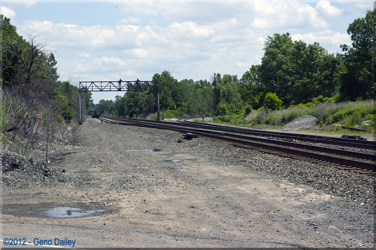 Looking east at the mainline from the Attridge Road crossing. The line that veers to the right of this photo is the West Shore line.