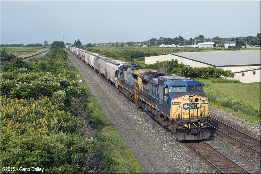 And here would be my "photo of the morning"! We have a meet with CSX Train Q-386 passing Q-167. To provide location, we are 70 miles from Buffalo