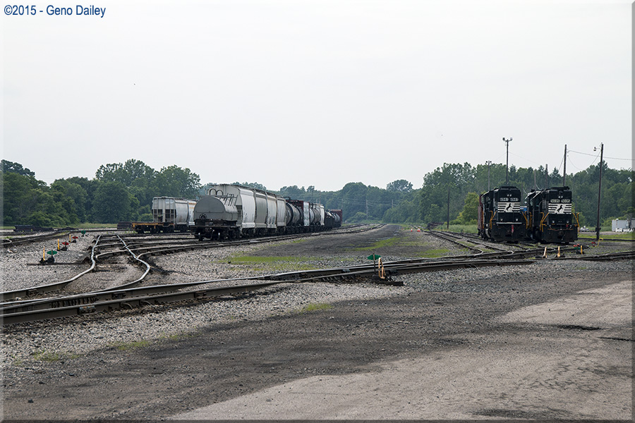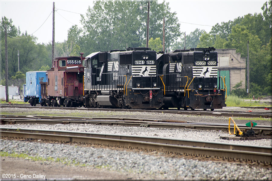Over at the nearby Norfolk Southern Conneaut Yard, we see EMD SD60E #6941 and EMD GP38-2 #5035 with a couple cabooses.