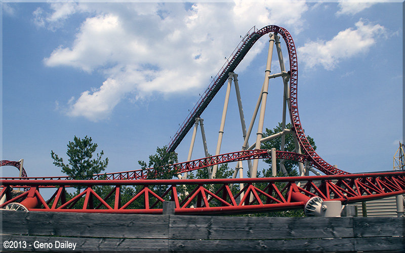 The second coaster you see on your ride on the CP&LE is "Maverick". Open in 2007, this coaster features tight turns and