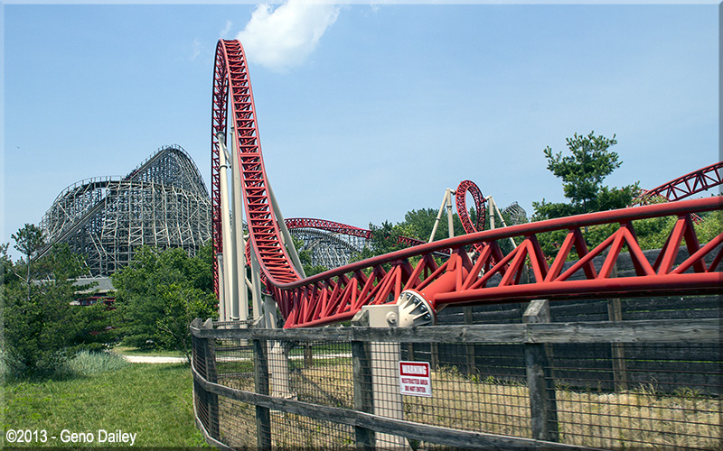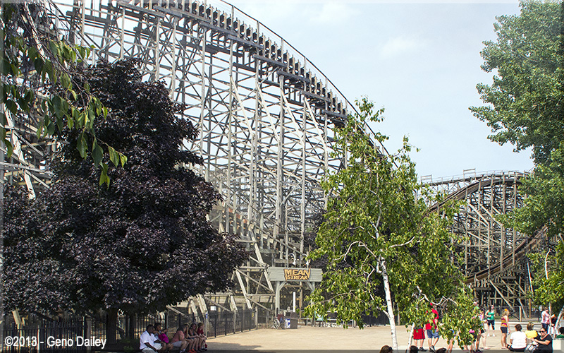 Mean Streak, the third coaster you see along the route of the CP&LE. Built in 1991, it was constructed using 1.7 million board feet