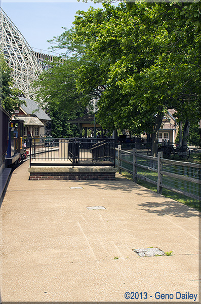 Shortly before arriving in Frontiertown, the train goes over a road crossing used only by employees that features a small