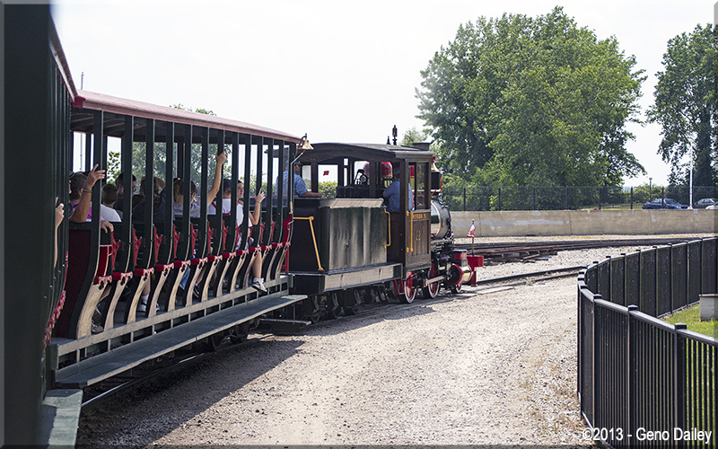 | One of the CP&LE's two passenger trains that run on the railroad, this one lead by 2-4-0 Steamer #22 - "Myron H.". |