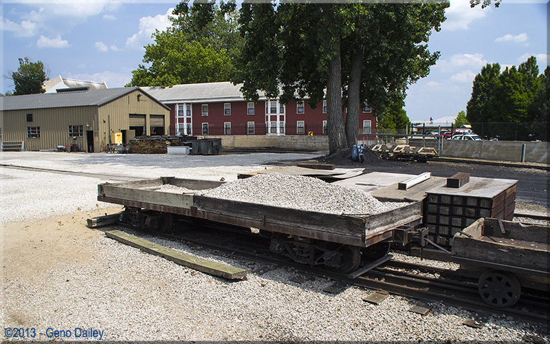 | A flat car loaded with ballast along with some new ties for some future trackwork on the CP&LE. |