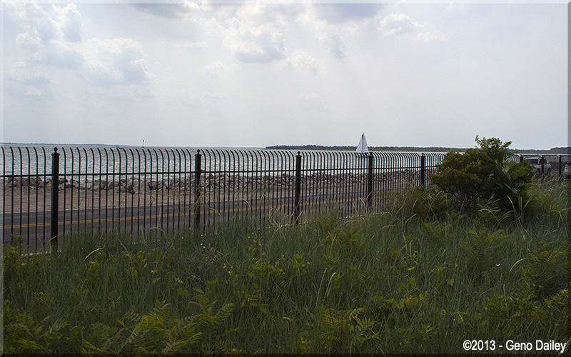 A view of Sandusky Bay from the railroad. The road in the foreground is Perimeter Road which connects the main parking lot with