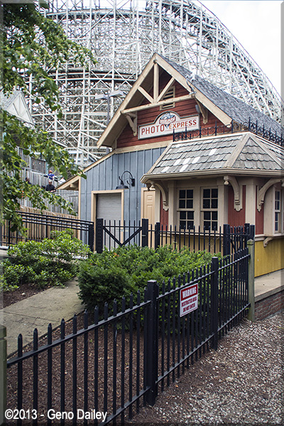 LEFT: Arriving at Frontiertown Station! RIGHT: The Photo Express building next to the Mean Streak coaster.
