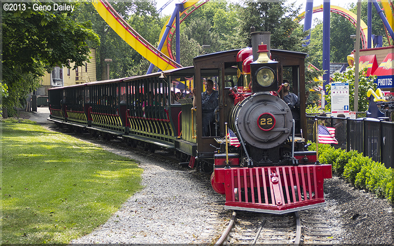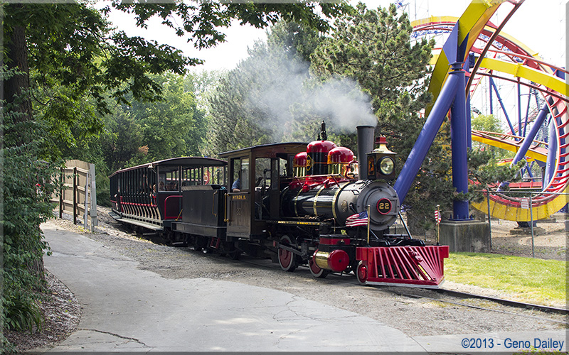 Being at Cedar Point for the CP&LE's 50th Anniversary allowed me to do something I've gotten a lot of practice doing over the years with running this web site, and that of course, would be railfanning!!! Included on this page are some scenic photos taken from various locations within the park of this wonderful steam-powered railroad! Special note that these photos were taken throughout the day of different trains and are sorted here in order of where I photographed them along the route. Enjoy... |