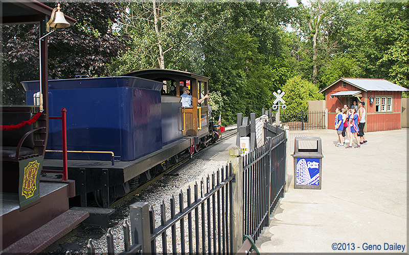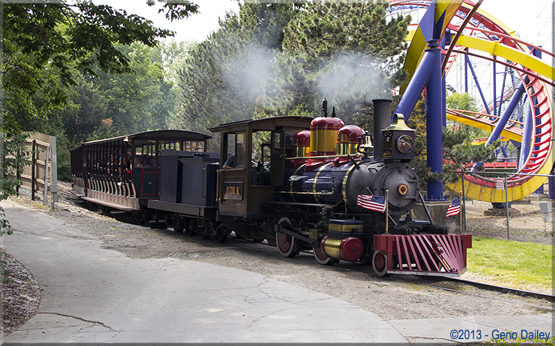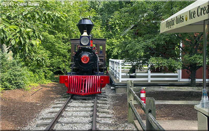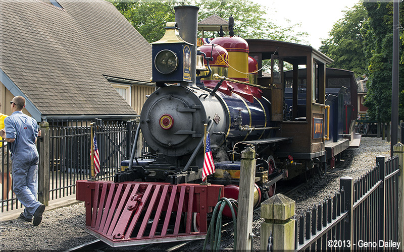 | Taking a break at Frontiertown is CP&LE #44 - Judy K. This train is headed back to Funway Station momentarily. |