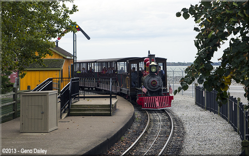 Being at Cedar Point for the CP&LE's 50th Anniversary as well as being at the park for my annual fall trip allowed me to do something I've gotten a lot of practice doing over the years with running this web site, and that of course, would be railfanning!!! Included on this page are some scenic photos taken from various locations within the park of this wonderful steam-powered railroad! Special note that these photos were taken throughout the day of different trains and are sorted here in order of where I photographed them along the route. Photos taken during my fall visit are denoted with the word "NEW" in the caption. Enjoy... |