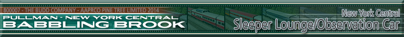 Built by Budd in 1949 for the New York Central Railroad as a 5 Double-Bedroom/Buffet/Observation/ Lounge and was originally numbered 10560. It operated on the Central's famous "New England States" in Pullman Service on that train until 1957 when it was retired and sold to the Canadian Pacific Railroad and renamed "Seaview". It operated on Canadian Pacific until being retired in 1969 and sold to the Quebec Mining Company where it was numbered 847. While owned by QMC, it was used as an official car for QMC and U.S. Steel executives. The car was sold to a private owner in the United States and eventually restored and rebuilt to Amtrak standards. The car was purchased by current owner Webb Rail LLC in 2012. Historical Information about this car provided by AAPRCO & Web Rail LLC. |