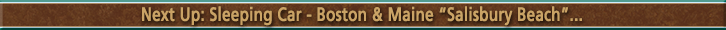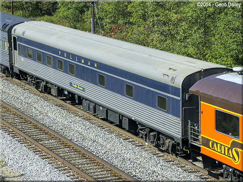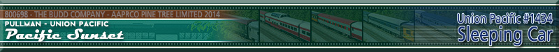 Built by Budd in 1950 for the Union Pacific Railroad, originally named "Pacific Range" and numbered 1434. The car was built as a 10 Roomette-6 Double Bedroom Sleeper. Conveyed to Amtrak in 1971 and renumbered 2627. Converted to Head-End Power from Steam Heat in July 1979 and renumbered 2883. The car operated on Amtrak's "Auto Train" until its eventual replacement with Superliner equipment in 1994. Purchased by its current owners Katy and Fred Gullette in 2010, it was remodeled into a Sleeper/Lounge car with 5 double bedrooms, 2 roomettes, general toilet, full kitchen, and lounge/dining areas. Historical Information about this car provided by AAPRCO and amtrakbythenumbers.com. |