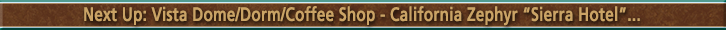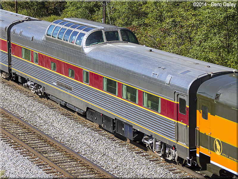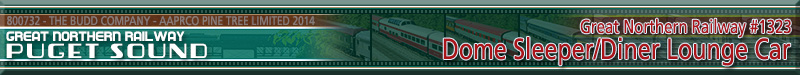 Built by Budd in 1955 for the Great Northern Railway as a dome coach and numbered 1323. Conveyed to Amtrak in 1971 and renumbered 9463. By March 1993, the car was retired by Amtrak and placed up for sale. Once sold into private ownership, the car was completely refurbished in 2001 and today is set up as a Dome/Lounge/Sleeper. The car today with its vista-dome, is set up to carry up to 16 passengers for viewing and dining and sleeps 8. Historical Information about this car provided by AAPRCO & amtrakbythenumbers.com. |