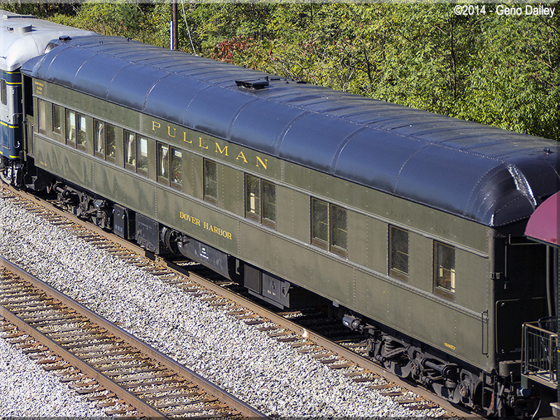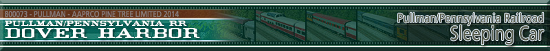 Built by Pullman in 1923 for the Pennsylvania Railroad as a Combine Baggage-Library Car and named "Maple Shade". The 81ft car weighed 80 tons and had a 4 Section, 12 Seat Lounge, Barber Shop, and a 28ft Baggage Area. It operated on famous Pennsylvania trains including the "Broadway Limited" and the "Spirit Of St. Louis" for 11 years. After service with several railroads, it was purchased by the Washington, DC Chapter of the National Railway Historical Society and has been totally renovated by the Chapter. Historical Information about this car provided by AAPRCO. |