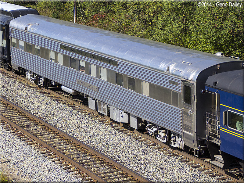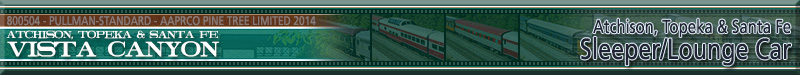 Built by Pullman-Standard in 1947 for the Atchison, Topeka & Santa Fe Railway as a round-end observation car with an original configuration of 1 Double Bedroom, 4 Drawing Rooms, and a Round-end Observation Lounge. The car was one of four built for the "Super Chief". The round end was modified for mid-train service in 1956. Private owners added a small buffet kitchen and a shower in 1994. The car was donated to the Arizona Railway Museum by Fred & Dale Springer and is operated by the museum. Historical Information about this car provided by AAPRCO. |