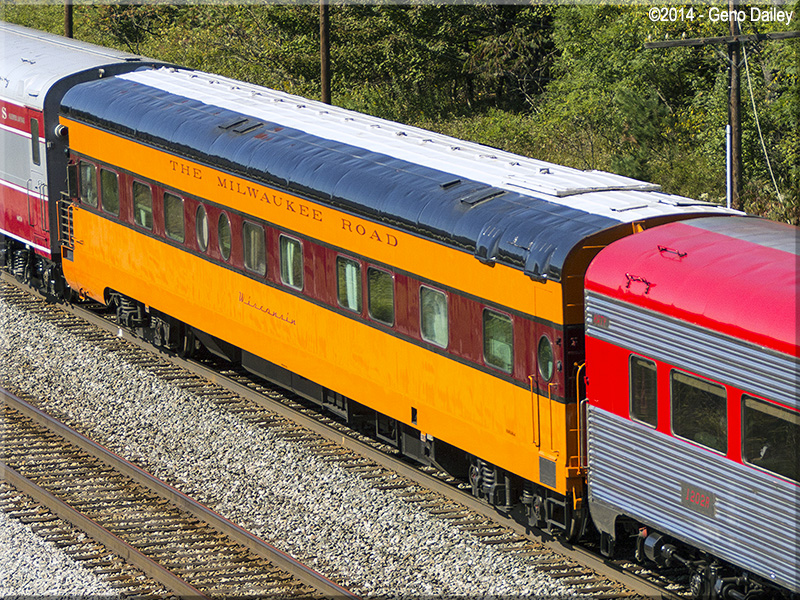 Built by Pullman-Standard in 1948 for the president of the Milwaukee Road. The car was also used for a short time by the Union Pacific Railroad to travel to Chicago. After UP, the car was sent back to the Milwaukee Road until the Soo Line bought them out and the car was renumbered Soo 100. In 2008, current owners Alan and Sherrie Conover purchased the car and restored the original name "Wisconsin". It has since been repaineted in the original paint scheme of orange and maroon. Historical Information about this car provided by AAPRCO. |