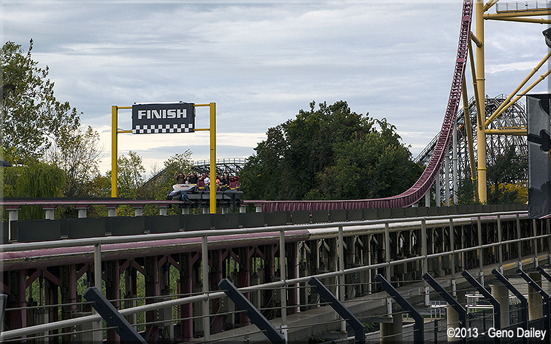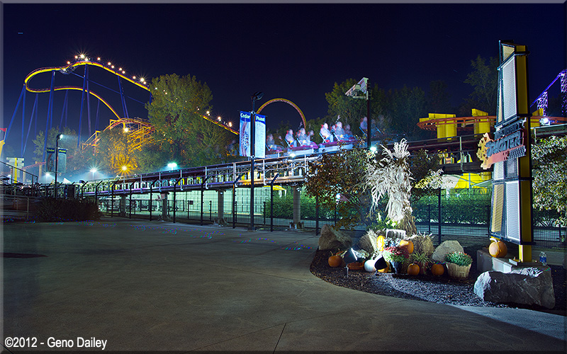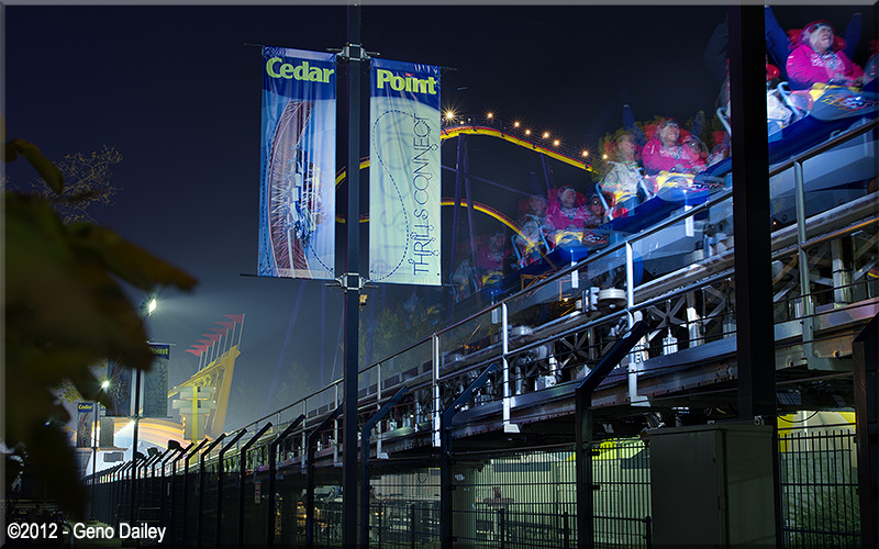 This photo shows one of Dragster's trains having just been launched out of the station. To freeze this image, I had to set the camera's