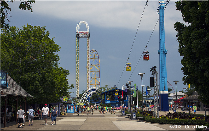 Cedar Point is a thrill-seekers paradise!!! From this view up the main midway, you see Power Tower,