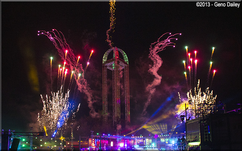 2013 saw the return of "Luminosity" which is a music and light show at the Celebration Plaza located near the top of the Main Midway.