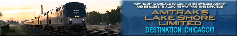 | After some good railfanning, I drove back to Sandusky to get ready for the next leg of this trip as I will be heading to Chicago and ultimately, the west coast on Amtrak tomorrow morning. I eventually headed to McDonald's for a quick dinner then drove the rental car back to Enterprise while they were still open. Thankfully, this year will NOT be a repeat of last year. On that trip, I dropped the car off late in the evening then walked 6 miles back to the hotel and ended up burning myself out! The end result once I got to Missouri was I ended up getting a nasty cold which really scaled back my plans once I got to La Plata. Enterprise drove me back to the hotel and I started doing laundry. I actually intended to get a decent amount of sleep before my cab picks me up at 3:30am tomorrow morning (or so I thought, please read on). While I was doing laundry, I continued writing this travelogue. I began checking on the status of my next train using the Amtrak app on my iPhone. According to the app, Train #449 from Boston arrived early into Albany, but Train #49 was very late arriving from New York into Albany. This had the potential of possibly effecting my travel plans if the train continued to lose more time. I decided to call and adjust the time of my cab to 4:30am due to the train getting later (I decided to do this once the combined Train #49 finally got out of Albany). Train #49's reason for being so late into Albany was due to severe storms which caused delays for several trains running between New York and Albany. This was the same storm system that blew through Sandusky on Sunday. I decided to try to go to bed early after the laundry was done as I had already packed up most of my gear. As I checked periodically with Amtrak to see the status of Train #49, it only kept getting later as it moved across New York State. To a degree, this train's lateness ended up being a blessing in disguise as you'll soon find out! Click the link below... |