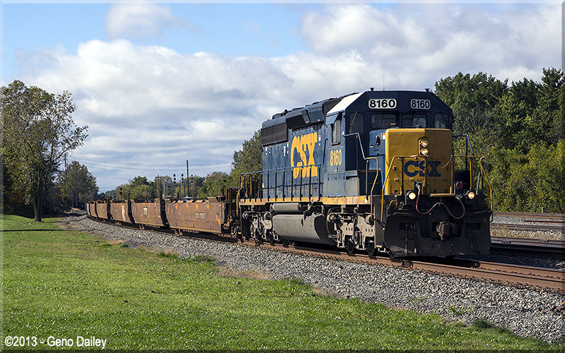 Next up is CSX Train X-100 with EMD SD40-2 #8160 handling power duties.