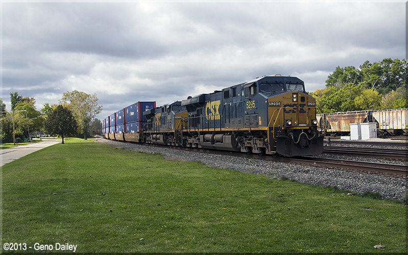 | CSX GE ES40DC #5295 leads this eastbound stack train on the Big Four line. |