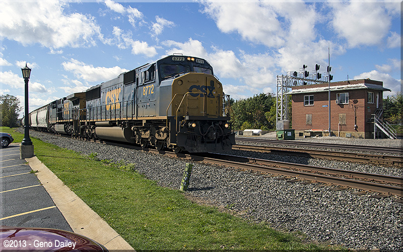 | After a good lunch, it was back to railfanning. Here we have CSX Train Q-384 with EMD SD60M #8772, a former Conrail unit leading. |