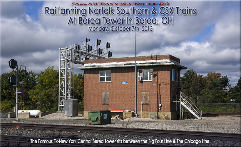 | Today would be my "relaxation day", if you will after spending three incredible days at Cedar Point. I decided to do something relaxing...GO RAILFANNING!!! I drove out to Berea, OH which is a suburb of Cleveland to get in some railfanning near the Berea Tower which is an interlocking tower located between 2 former New York Central mainlines. Behind the tower is the Chicago Line, now owned by Norfolk Southern and in front of the tower is the Big Four line which is now owned by CSX. Since my last visit here in 2011, the Berea Passenger Station located just to the east of the tower now has a restaurant inside. You can get some good eats now at the Berea Union Depot Tavern which features trackside views from inside its dining area. I hung out at Berea for a bit, chatting with a local railfan and photographing some trains. I then headed inside the restaurant to have a House Salad and a burger called "The BBCO" which had barbecue sauce and onion straws on it, along with shoestring French fries and a Diet Pepsi. All of the food was very good. After lunch, I headed back to my rental car and hung out in Berea for another hour and photographed a few more trains before driving back to Sandusky. Included here are photos taken while railfanning at what is one of the most popular railfanning hot spots in Northeast Ohio... |