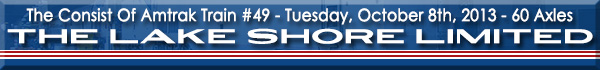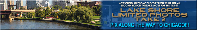Unfortunately, due to the train's late arrival, there would be no time to go railfanning at Roosevelt Road this year during my layover here. Ultimately though, it wasn't a big deal as I got to ride on the Water Level Route entirely in daylight from Sandusky to Chicago (a rarity today due to the train's normal schedule) so I'll get back to Roosevelt Road again on a future trip! I did get a couple quick pix of the train before walking into Chicago Union Station and heading straight for the Metropolitan Lounge which is the First Class lounge for sleeping car passengers! I had my luggage stored there and I ran upstairs to McDonald's and had a very quick lunch. I then ran across the street to a nearby CVS/Pharmacy to pick up some Diet Pepsi and bottled water for the sleeping car. Included below is a link to photos taken on this leg of the trip, some of which I never thought I'd have the chance to take, but this is what happens when its possible to take advantage of photo opportunities as a result of a late train! Enjoy... |