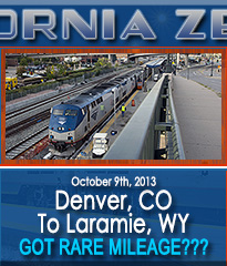 I woke up around 6:15am and immediately went to the dining car for breakfast as I wanted to eat before we got to Denver and I'll explain why later. I would have those awesome Amtrak Pancakes for breakfast with Pork Sausage patties and Breakfast Potatoes with Orange Juice and my morning battery charger, Diet Pepsi! I was seated with a couple from Connecticut and we had good conversations over breakfast. Our next stop would be Denver, CO where we arrived at 7:38am having made up some time overnight, now running only 23 minutes late. This is a major service/fueling/watering stop for the train as well as a crew change point. I wanted to finish breakfast before we got here because I wanted to do what else? Take pictures!!! If you've read my travelogues in the past you'll know, I use the service stops to get photos because I don't smoke and one big way I'm trying to tell this story is via the use of a lot of photos! I would walk up Wewatta Street which parallels the station platform and get some photos of the train being worked on during the station stop. Amtrak is using a temporary facility that includes a station building located at the corner of 21st and Wewatta Streets in downtown Denver. The station building is located such that you need to cross Wewatta Street to get to the platform. This arrangement will only be in place until sometime in 2014 when the renovations at Denver Union Station are completed and Amtrak will once again use that station for this train. I couldn't help but notice how well constructed this supposed temporary platform was! I hope they can find some use for it once they go back to Union Station! One other thing I couldn't help but notice was the fact that as soon as I started running up Wewatta Street, that I felt very winded and very quickly so! I know I'm outta shape but this made no sense until I had to remind myself that I'm in the "Mile High City" whose elevation is more than 7 times as high as it is back home, so the thinner air was making me feel winded a little quicker! At 8:16am, we departed Denver, now running only 11 minutes late. With our new crew aboard, the big announcement was made that our train would be taking a detour route through Wyoming as the normal route was damaged by flooding back in September which caused a severe washout west of the Moffat Tunnel. So today, we would ride Union Pacific rails north out of Denver through Greeley, CO then eventually cross into Wyoming just west of Cheyenne and continue the journey west on what is part of the original Transcontinental Railroad (and here's the brief history lesson for today) which was completed on May 10th, 1869 at Promontory Point which is near Ogden, UT. The Central Pacific Railroad raced east from Sacramento, CA and the Union Pacific Railroad, starting from Omaha, NE, raced west to build the railroad which was completed when the 2 railroads connected with each other and drove in the golden spike! And with that, let's go back to the travelogue shall we? Once the train gets to Salt Lake City, it will continue on the normal route to Emeryville, CA which is where I'm headed. Passengers who were to travel through the cities and towns that temporarily lost service were "bustituted" (that's probably not a real word but you get the idea!). In other words, a chartered bus drove them to their respective stops with the exceptions of Fraser and Granby, CO where due to circumstances beyond Amtrak's control, there would be no alternate transportation. It was announced that the train would run essentially non-stop to Salt Lake City, stopping only in Green River, WY to change crews and that's it. Knowing that, I'm sure glad I don't smoke! Once we departed Denver, we had to stop at the end of the Union Pacific North Yard for switches to be lined for our continued journey. We would pass through towns such as Greeley, Eaton and Ault, CO before crossing the state line into Wyoming. One Amtrak conductor told me that Amtrak crews were actually qualified all the way to just outside Cheyenne where UP pilots were picked up once we connected with the old Transcontinental Railroad. I spent some time in the lounge car taking some photos as we moved towards Wyoming, then I spent some time in my sleeping car relaxing and taking more photos as we traversed across southern Wyoming, going through towns like Speer, Buford, Tie Siding, and Laramie. I headed to the dining car for lunch which was served first-come first-served just like at breakfast. For dinner however, Amtrak does take reservations for dining car meals. We would pass our eastbound counterpart, Train #6 somewhere in Laramie while I was in the dining car for lunch. I would have the Angus Steak Burger with Bacon with Kettle Chips and a Diet Pepsi along with Cheesecake topped with Blueberries for dessert, all the food was excellent!!! After lunch, I headed back to the sleeping car and relaxed and took more photos, passing more towns including Hanna, Sinclair, Rawlins, Wansutter, and Rock Springs, WY. I went and got a Snicker's bar from the cafe car just before we stopped just outside Green River, WY at a red signal with a freight train ahead of us. Once we got our signal, we were off to Green River and would enter the UP yard and get our new crew. We arrived there at 4:27pm. Because we were in a busy yard, no smoking break could be permitted there. We departed Green River at 4:33pm. The dining car attendant now walked through the sleeping cars to take dinner reservations. I opted for the 6:00pm time slot. At 6:00pm, I headed to the dining car and was seated with passengers from Oregon, Alabama, and Colorado. We all had good conversation and now we would be crossing into Utah from Wyoming and would parallel I-84 for a bit, having paralleled I-80 for a good portion of this trip so far! For dinner, I would have the Amtrak Signature Steak once again, but this time with Rice and Mashed Potatoes with a Diet Pepsi and more Cheesecake for dessert, all were delicious!!! Aft