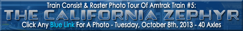 Included below are a set of links to the photos, one of the biggest reasons I make these trips! Because there are so many photos (and trust me, it was no easy task determining which photos make it into the travelogue and which ones end up on the virtual "cutting room floor") I have broken them up into four sections by day and part of the country I covered. Just click any blue link to see a group of photos. The plan for the next day was to drive out to Portola, CA to visit the Western Pacific Railroad Museum. That would be the next destination on this trip. I'll be completely honest when I say I was so insanely tired when I finally got to the hotel Thursday night that I was planning on just sleeping in on Friday. Thankfully, I ended up getting such a full, and great night's sleep that I was fully rested the following morning, so I decided to make the trip, and I'm so glad I did as you'll soon see! So check out the photos from this train ride and then see my visit to the museum! Enjoy... |